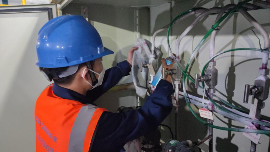 江南检测员工在国能太仓项目上进行绿色检测🔀。钟孝康摄