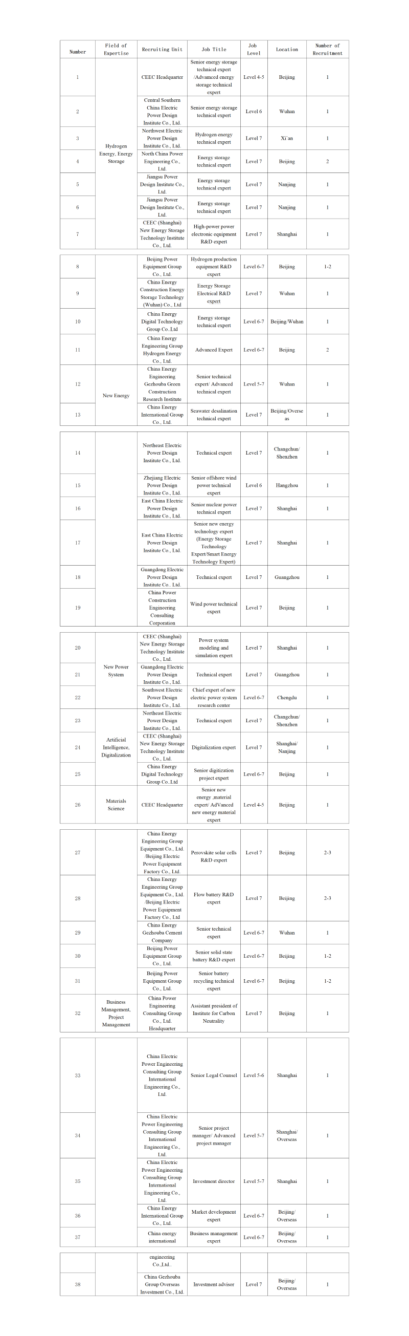 中国能源建设集团(股份)有限公司海外高层次人才招聘公告